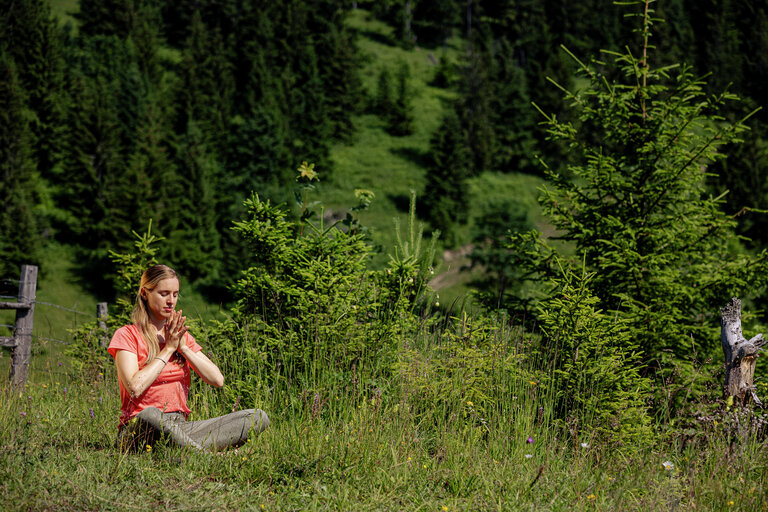 2,5 h achtsame Wanderung mit Yoga- und Meditationselementen mit Yogalehrerin Tina zur Julius Seitner Hütte & Einkehr, ca. 1,5h gemeinsamer Abstieg
